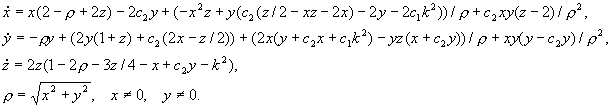 пара особых точек. Одна из них устойчива при P(c1,c2,k)>-(4k2-1)2.