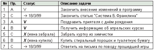 своего рода дневник того, что сделано. Система Франклина же «направлена вперёд»