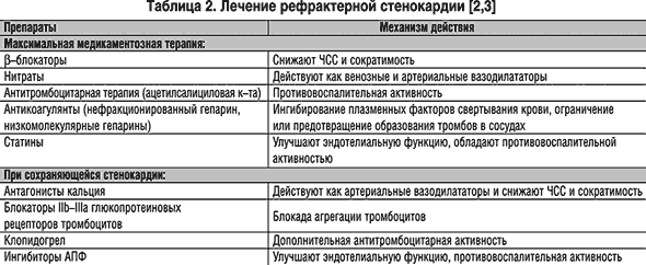 лечения рефрактерной стенокардии включает (табл. 1): 1) использование