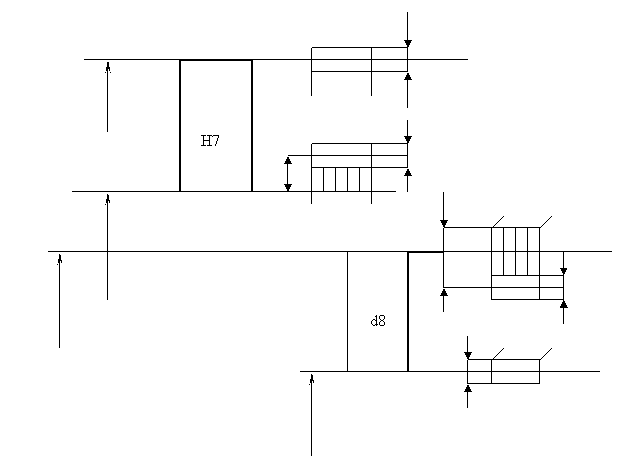 посадки ø 40 H7/d8; написать все виды обозначения