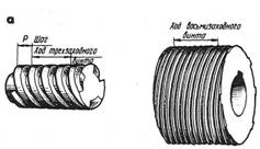 резьбы на торце винта или гайки виден только один конец витка, а у
