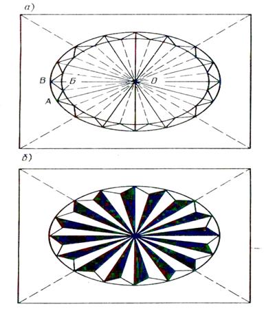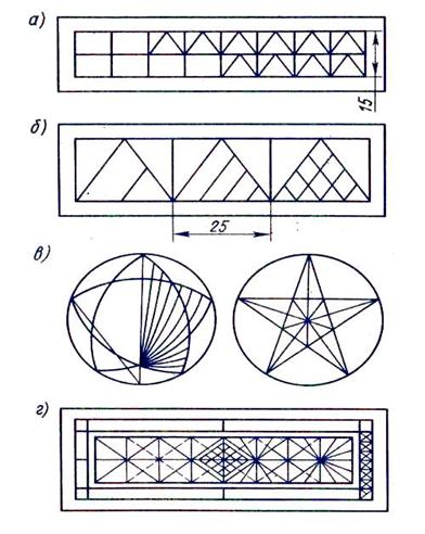 центре. При разметке розеток заготовку сначала делят на квадраты (рис. 15, а). Из