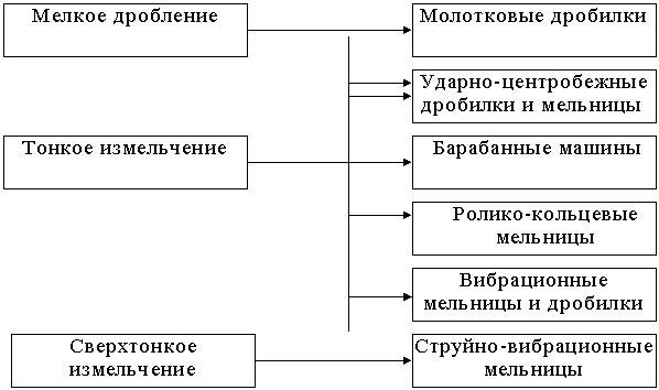 исходного материала и конечного продукта различают два типа измельчения: 1)