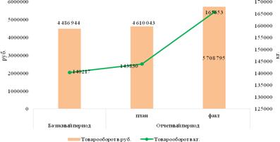 на объем товарооборота в кг. было выявлено, что на товарооборот в отчетном году