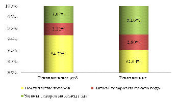 товарных запасов на начало года и объема поступления товаров увеличили товарооборота