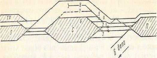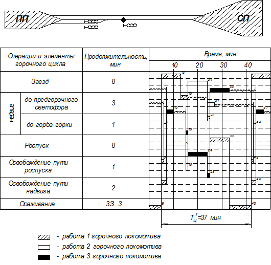 Примечание: Н - путь надвига; Р - путь роспуска; Л - горочный локомотив;