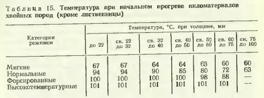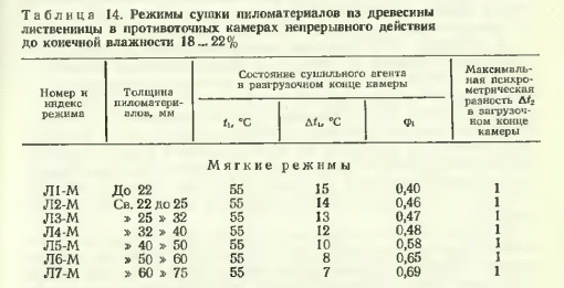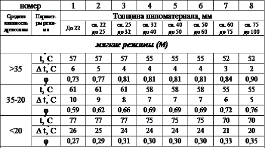 сушильного агента. Режимы сушки назначают с учетом породы древесины, толщины