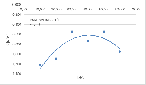 зависимость в области стабилизации [-5; -23] мА: температурный коэффициент в