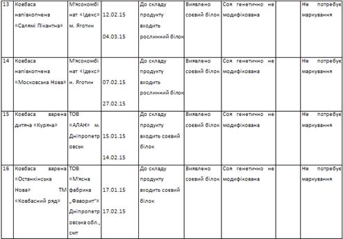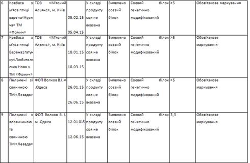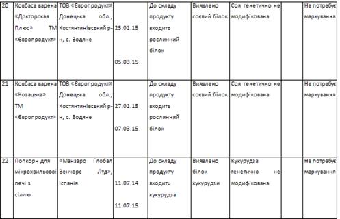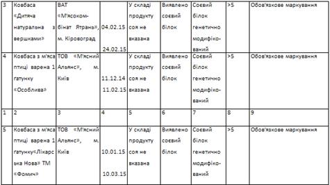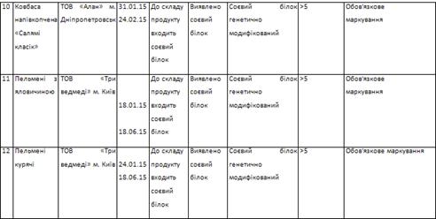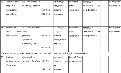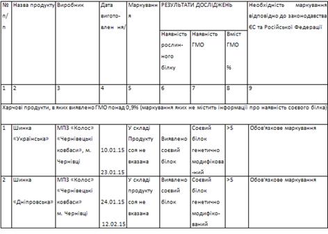 Результати досліджень вмісту ГМО у харчових продуктах, що були придбані в