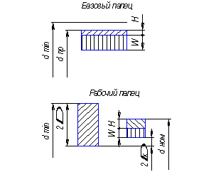 базового и рабочего пальцев рассчитываются по схеме полей допусков.
