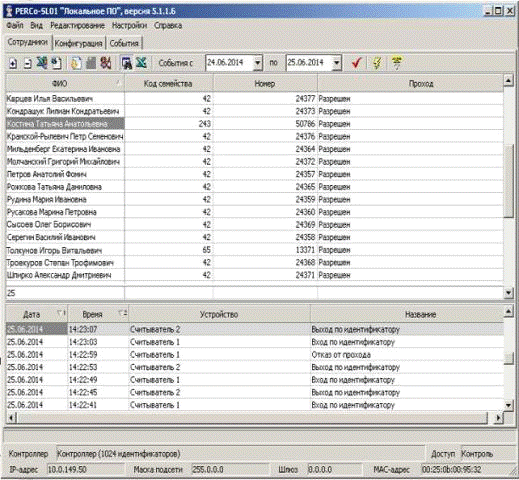 контроллер, и только потом переносится на компьютер. В программных же СКУД