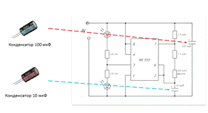 конденсатор задают время, которое будет основополагающим для мигания
