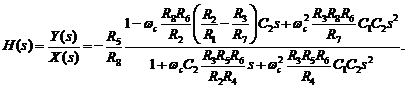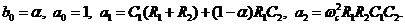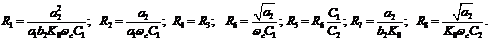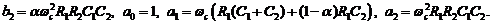 Из этих уравнений по коэффициентам передаточной функции фильтра b0, a0, a1, a2 можно рассчитать величины элементов схемы.