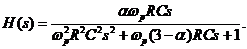 обстоятельством, что на резонансной частоте коэффициент при s2 в знаменателе передаточной функции должен равняться 1.