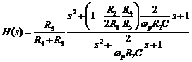 Обычно выбирают С1=С2, а R3=1/ωcC1. Биквадратный фильтр