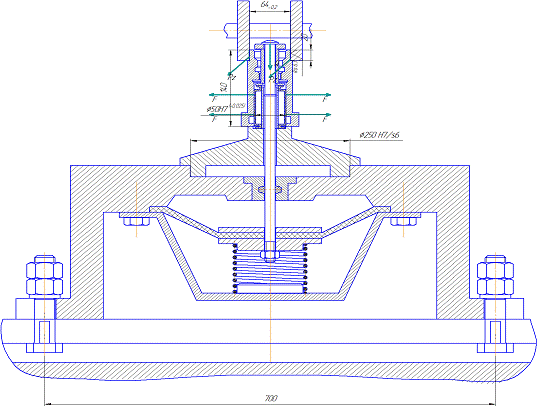 с тянущей силой на штоке большей 36000 Н, что больше необходимой силе зажима.