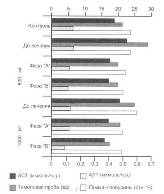 цитолитического синдрома, тимоловой пробы, а также содержания гамма-глобулинов