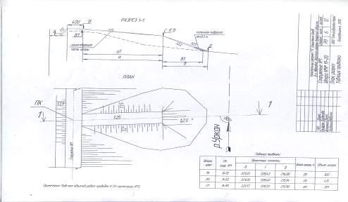 кюветов глубиной 0,5 м и шириной по дну 1,0 м с заложением откосов 1:1,5.