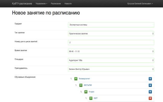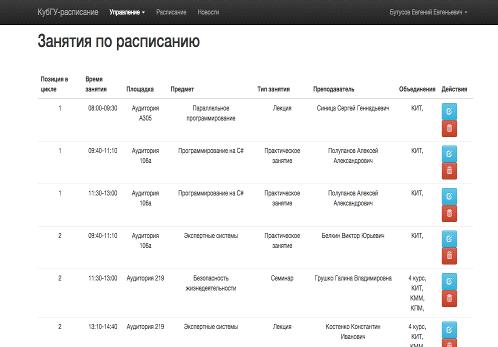 Расписание занятий в университете является удобным средством отражения