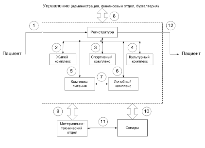 подразделения как кухня, столовая и врач-диетолог. Между ними происходит обмен
