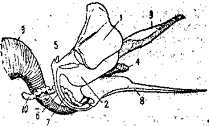 2-продолговатая пластинка; 3-стилус; 4-хитиновый чехол; 5-треугольная