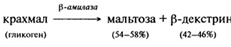нативный крахмал; клейстеризованный крахмал гидролизуется до мальтозы в β-конфигурации. Схему можно записать