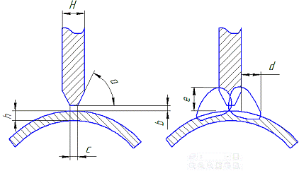 Геометрические размеры такого соединения: е=12±2 мм; b=3±2 мм; к=0,15Sч0.5S,