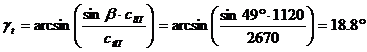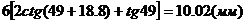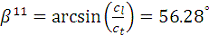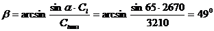 наклона призмы 49?, угол ввода поперечных волн в объект контроля