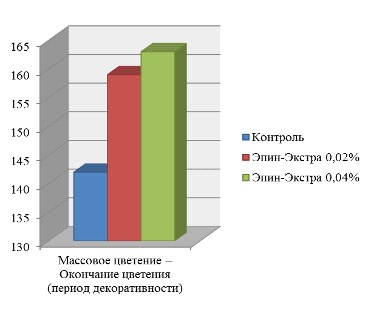 стимулятора роста Эпина-экстра на скорость зацветания, длительность цветения и