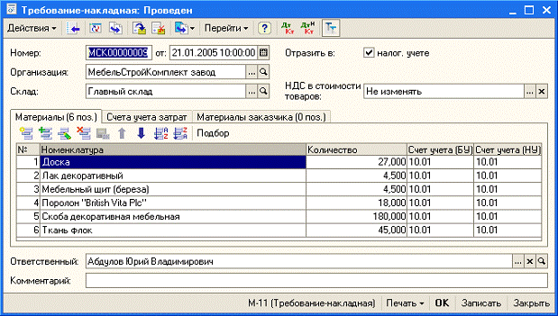 введенных в информационную базу "1С:Бухгалтерии 8".