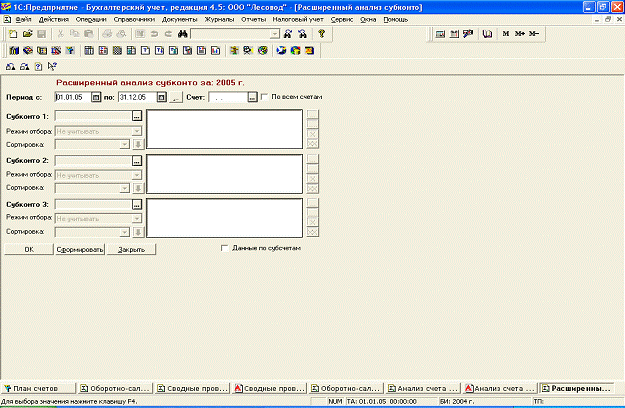 и кредитовые обороты по субконто, а также развернутое и свернутое сальдо на