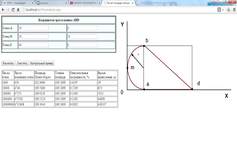 завершения эксперимента получает от сервера значения площади, рассчитанной