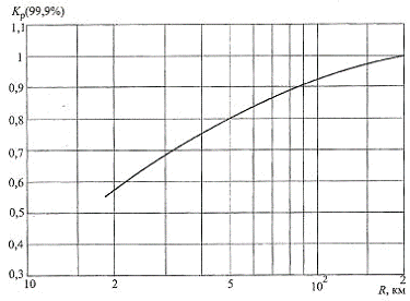 интервала, км (R = 15,4 км, следовательно SESRF определяется по второй формуле