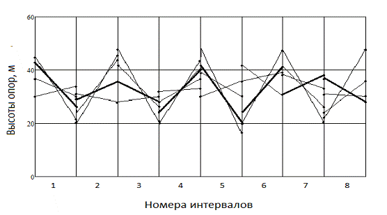 выбираются оптимальные высоты подвесов антенн на 8-интервальном участке. На