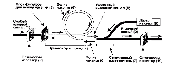 благодаря широкой полосе пропускания и малому затуханию оптического волокна,