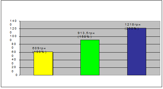розмір підвищеної ПСП у розмірі 150% (у 2014 році - 913,50 грн.) та 200% (у