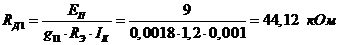 Величина сопротивления, стабилизирующего эмиттерный ток, принимая UГ=60