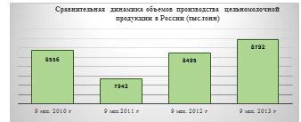 пересчете на молоко за 9 месяцев 2013 года составил 8792 тысячи тонн (+3,5% к 9