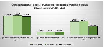 объемов производства сухих сливок и сухого молока показывает общее снижение