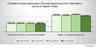 масла, сыров и сырных продуктов. Уменьшение объемов производства сливочного