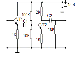 КТ-312В.Размеры конденсаторов и резисторов подбираются в соответствии с