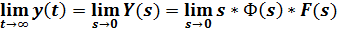 имеет конечное значение. Для единичного ступенчатого воздействия F(s) = 1/s, а