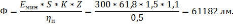 Для данного типа светильников: ηн = 0,5 Коэффициент запаса: Кз = 1,5, Коэффициент