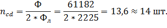 Так как в каждом светильнике две лампы, то общее число светильников: