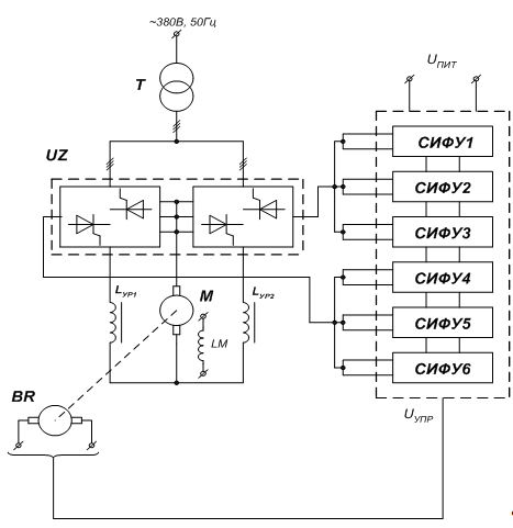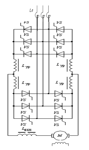 питается от напряжения питания сети UПИТ. LУР1 и LУР1 уравнительные реакторы,