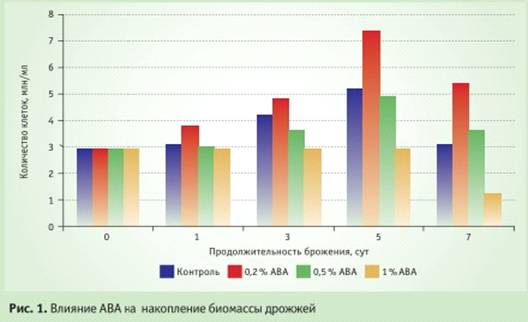 интенсивному приросту биомассы дрожжей, однако с увеличением концентрации АВА