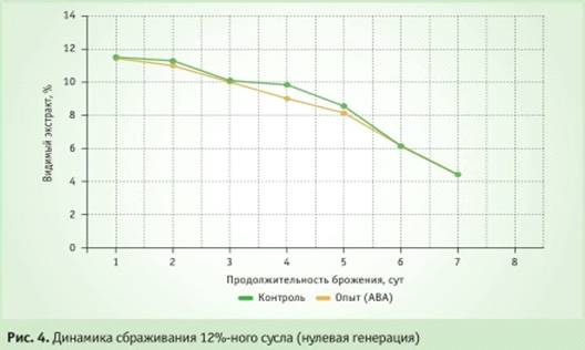 обработанные АВА в оптимальном количестве 0,2 %, были заданы в сусло с 12,0 %