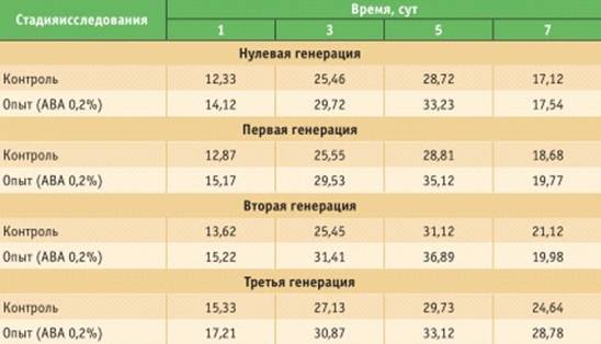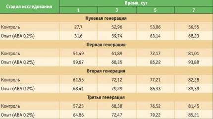 АВА в дозировке 0,2 % увеличивает бродильную активность дрожжей от генерации к