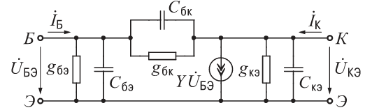 эквивалентная схема транзистора на высокой частоте для включения с ОЭ