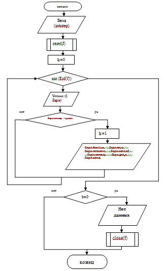 begin:= 1;('Найден сотрудник!');(Zapis.familiya, ' ', Zapis.imya, ' ',